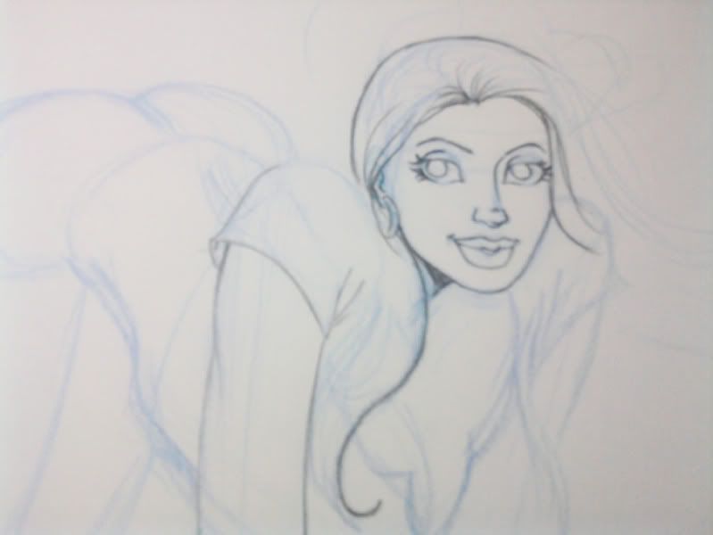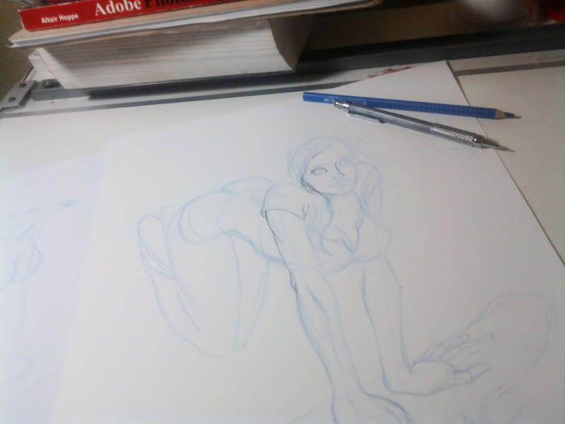 Como tenho esboçado uns testes para pinup's, que venho ensaiando desenhar há tempos, propus a ele este tema.